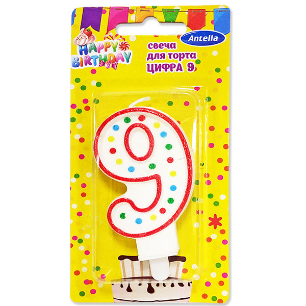 —Свеча для торта Цифра "9" 7см Антелла (У-24)